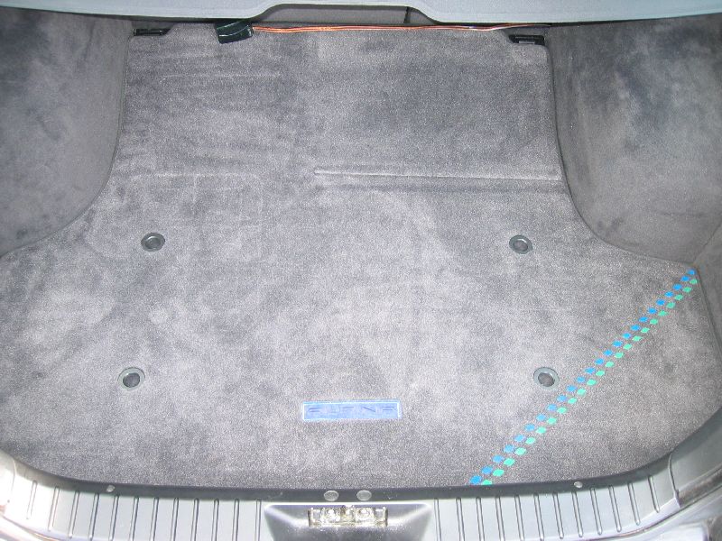 Das ganze mit einer teppichbezogenen Holzplatte abgedeckt, es soll schließlich noch was in der Reserveradmulde abgelegt werden können ohne das dort ein Hitzestau auftritt oder irgend eines der Geräte beschädigt wird (Ich hab da ein Abschleppseil, das M-Moblity-System samt Dichtmittel, eine Flasche Scheibenklar und eine Wolldecke und die Betriebsanleitungen der Geräte liegen - aber das Chaos tue ich euch besser nicht an ;-) )