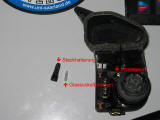3. Hier ist das Birnchen für den Lichtschalter lokalisiert. Es läßt sich mit einem spitzen Schraubendreher oder einem kleinen Messerchen heraushebeln (ist nur gesteckt).