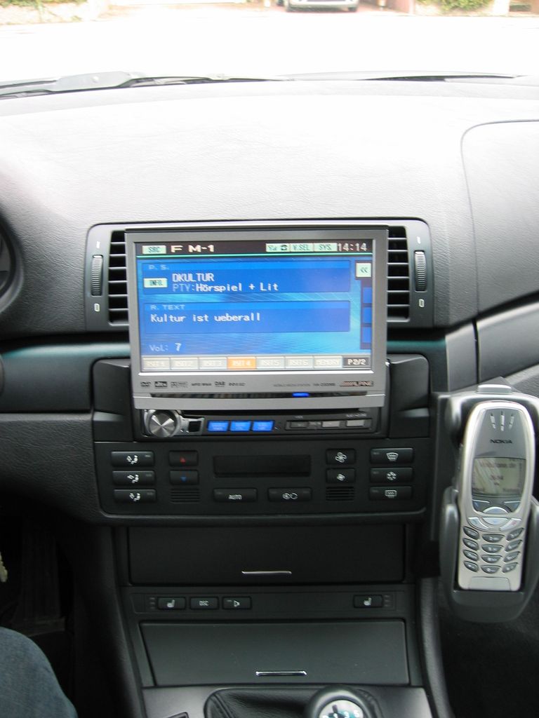 Im Prinzip die Anlage aus meinem alten 328i Touring: Alpine IVA-D300RB, NVE-N099P, CHA-S634, KCA-420i, KCA-410C. Erweitert um den CXA-B200NK mit Nokia 6310i.